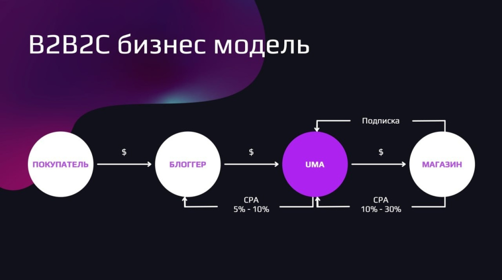 Ещё одна b2b2b-модель, в которой одна сторона является плательщиком, две другие получают деньги за услуги, а платформа делает эту коммуникацию возможной и берёт за сервис комиссию.