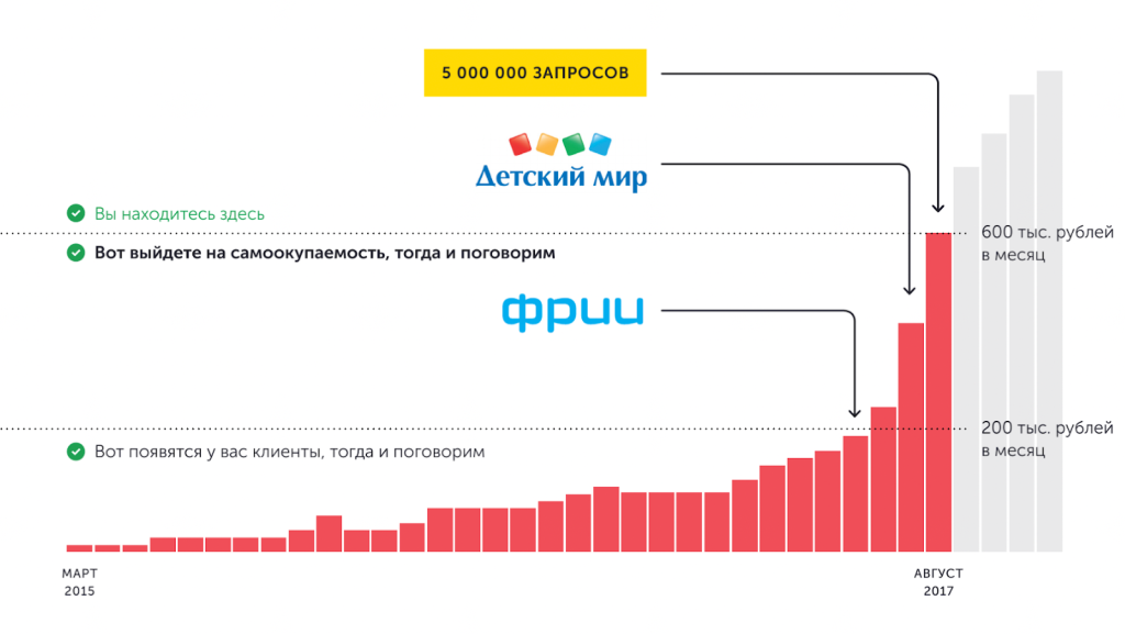Вот пример, как можно взбодрить инвестора. Команда Usedesk троллит: показывает текущий уровень бизнеса, план его роста, и что инвесторы уже пару раз говорили «вот когда у вас будет… тогда и приходите за инвестициями».