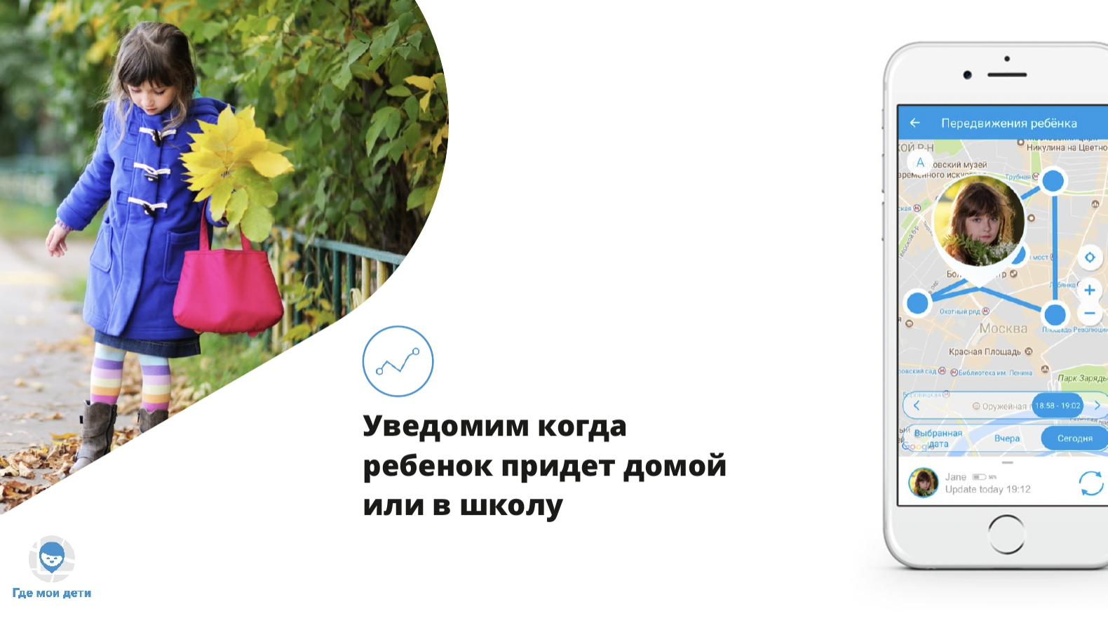 Следующий слайд от компании «Где мои дети» с понятным продуктом в сегменте B2C.